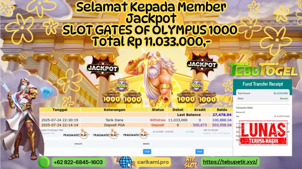 Selamat kepada User id : OREO*** telah berhasil mendapatkan kemenangan besar pada permainan SLOT GATES OF OLYMPUS 1000 dengan … Baca selengkapnya...