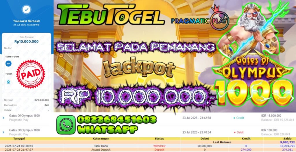 Selamat kepada User id : GEL**** telah berhasil mendapatkan kemenangan besar pada permainan SLOT GATES OF OLYMPUS 1000… Baca selengkapnya...