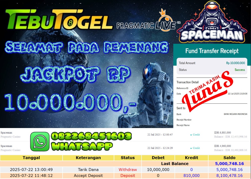 Selamat kepada User id : BAWAHAN****** telah berhasil mendapatkan kemenangan besar pada permainan LIVE GAMES SPACEMAN dengan kemenangan sebesar Rp … Baca selengkapnya...