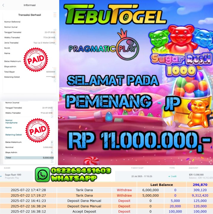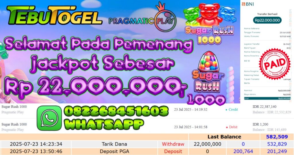 Selamat kepada User id : sygmami*** telah berhasil mendapatkan kemenangan besar pada permainan SLOT SUGAR RUSH 1000 dengan … Baca selengkapnya...