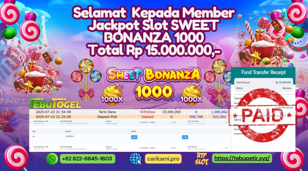 Selamat kepada User id : HAMHAM*** telah berhasil mendapatkan kemenangan besar pada permainan SLOT SWEET BONANZA1000 dengan kemenangan … Baca selengkapnya...