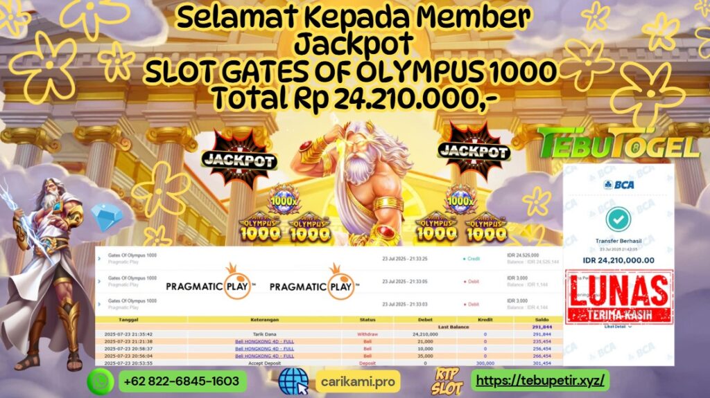Selamat kepada User id : XOZI*** telah berhasil mendapatkan kemenangan besar pada permainan SLOT GATES OF OLYMPUS 1000 dengan … Baca selengkapnya...