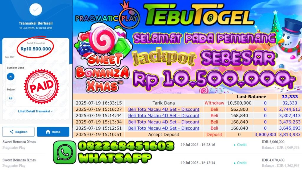 Selamat kepada User id : ANGUR**** telah berhasil mendapatkan kemenangan besar pada permainan SLOT SWEET BONANZA XMAS dengan … Baca selengkapnya...