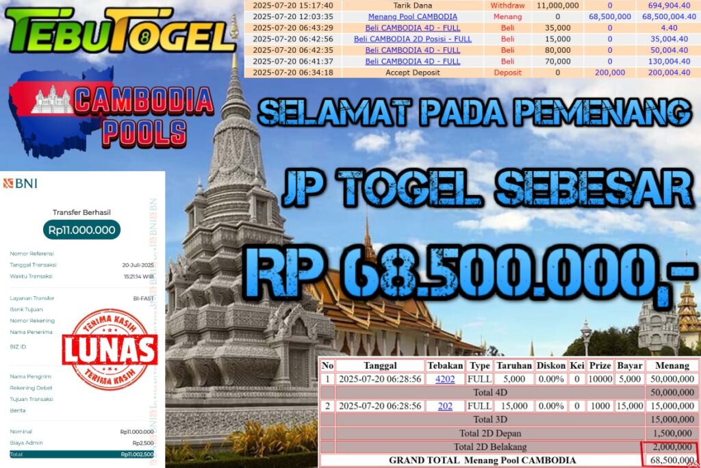 Selamat kepada User id : MING**** telah berhasil mendapatkan kemenangan besar pada permainan TOGEL CAMBODIA dengan kemenangan sebesar Rp … Baca selengkapnya...