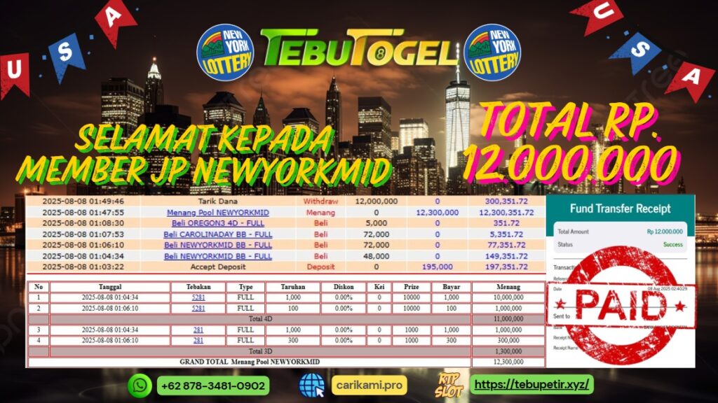 Selamat kepada User id : SOKA** telah berhasil mendapatkan kemenangan besar pada permainan TOGEL NEWYORKMID dengan kemenangan sebesar Rp 12.000.000,-… Baca selengkapnya...