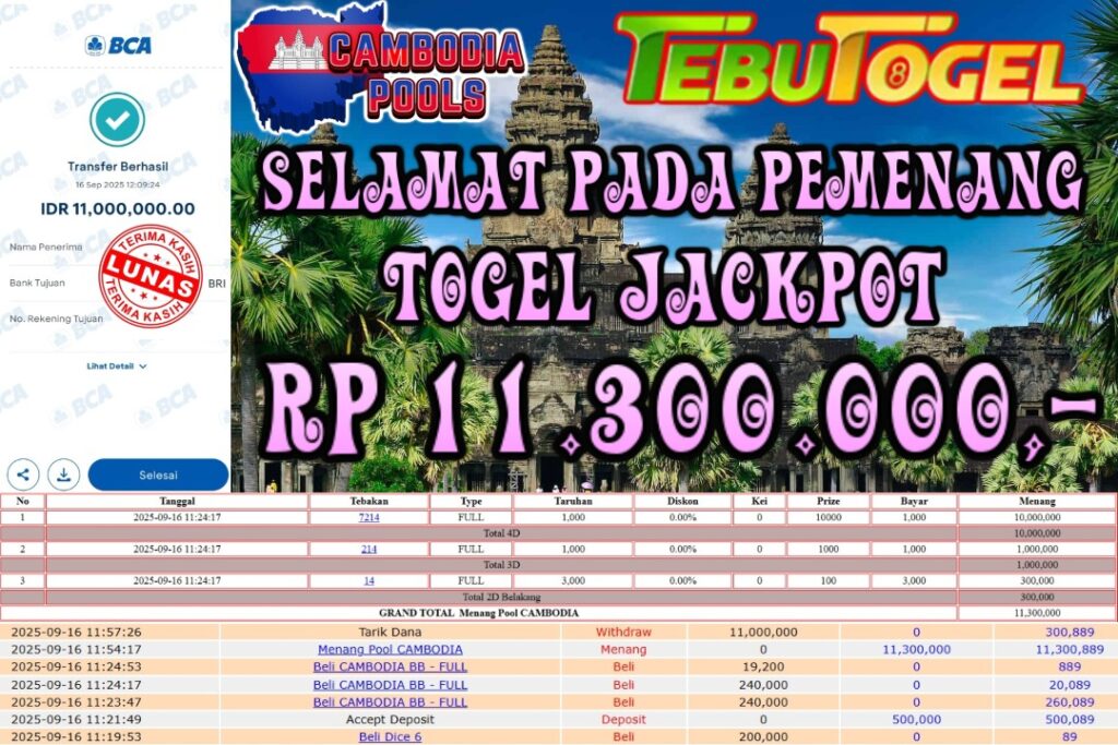 Selamat kepada User id : DANYA**** telah berhasil mendapatkan kemenangan besar pada permainan TOGEL CAMBODIA dengan kemenangan sebesar Rp 11.300.000,-… Baca selengkapnya...