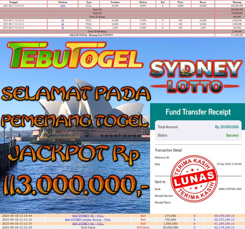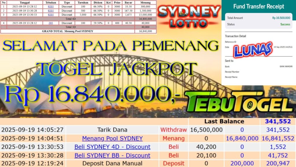 Selamat kepada User id : TAMUDA*** telah berhasil mendapatkan kemenangan besar pada permainan TOGEL TOTO SYDNEY LOTTO dengan kemenangan sebesar … Baca selengkapnya...