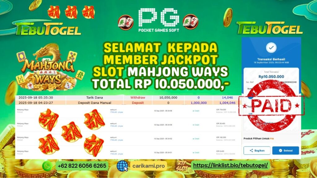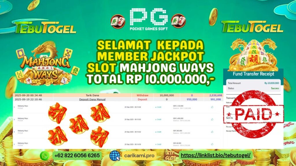 BUKTI JACKPOT SLOT MAHJONG WAYS Rp 10.000.000,- LUNAS