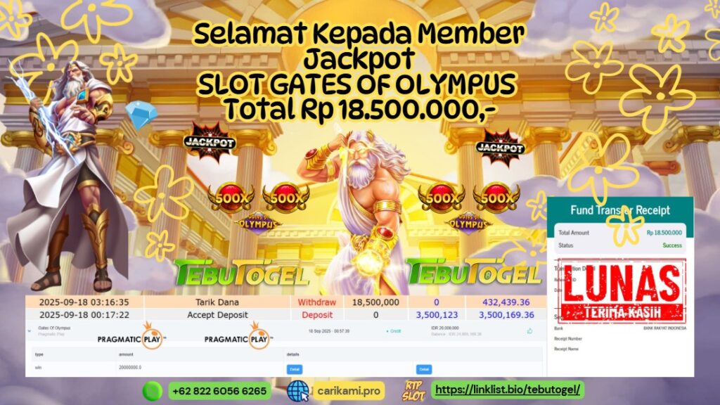 Selamat kepada User id : BEB*** telah berhasil mendapatkan kemenangan besar pada permainan SLOT GATES OF OLYMPUS dengan kemenangan sebesar … Baca selengkapnya...