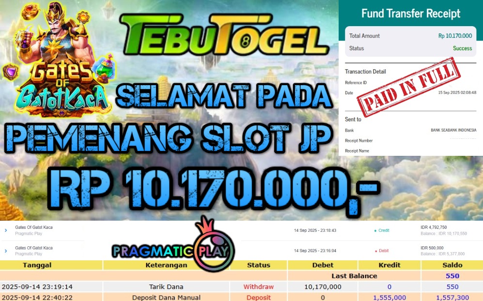 Selamat kepada User id : YOUKNOW**** telah berhasil mendapatkan kemenangan besar pada permainan SLOT GATES OF GATOTKACA dengan kemenangan sebesar … Baca selengkapnya...
