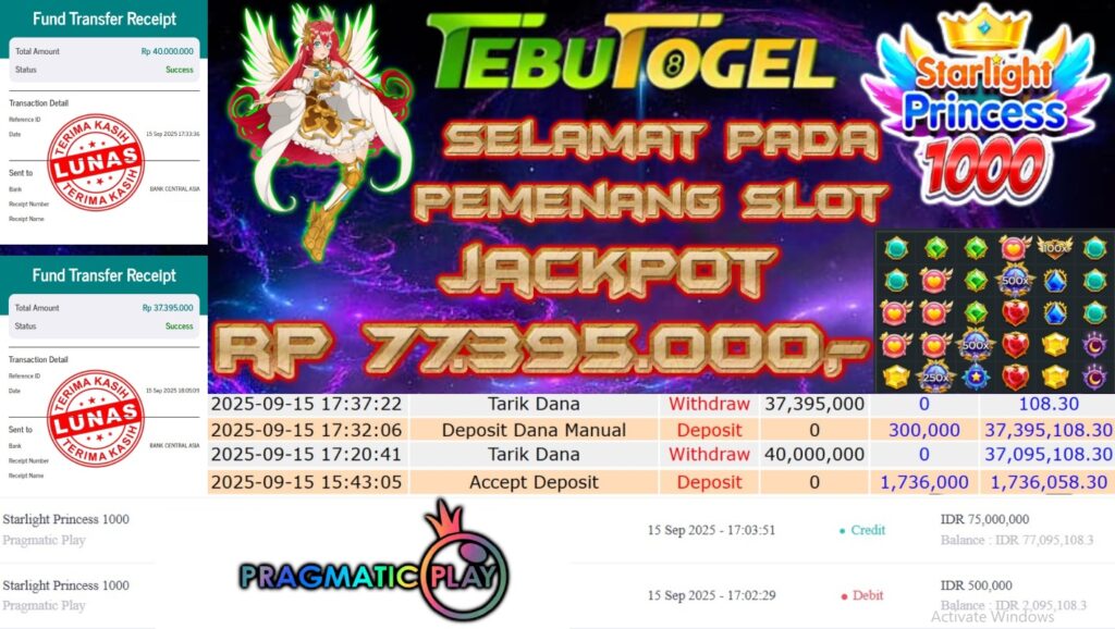 Selamat kepada User id : WENOW**** telah berhasil mendapatkan kemenangan besar pada permainan SLOT STARLIGHT PRINCESS.1000 dengan kemenangan sebesar Rp … Baca selengkapnya...