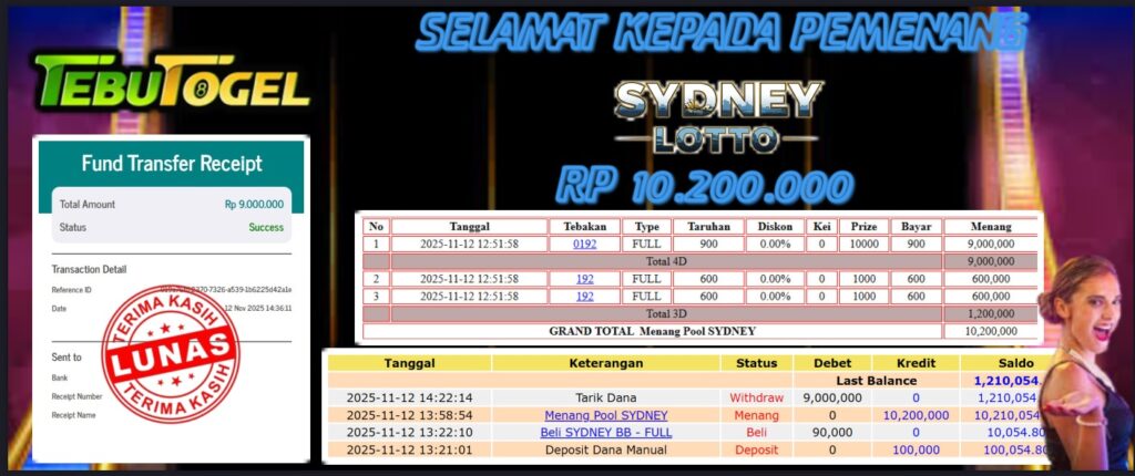Selamat kepada User id : ZNUER*** telah berhasil mendapatkan kemenangan besar pada permainan TOGEL SYDNEY LOTTO dengan kemenangan sebesar Rp … Baca selengkapnya...