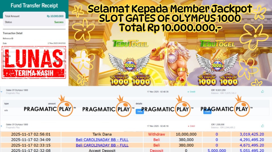 Selamat kepada User id : REX*** telah berhasil mendapatkan kemenangan besar pada permainan SLOT GATES OF OLYMPUS 1000 dengan kemenangan … Baca selengkapnya...