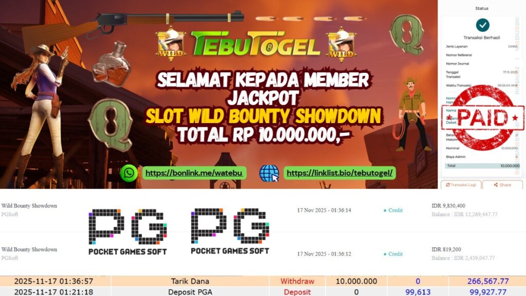 BUKTI JACKPOT SLOT WILD BOUNTY SHOWDOWN Rp 10.000.000,- LUNAS