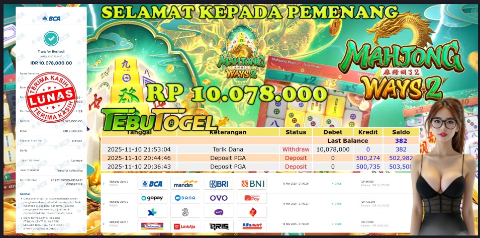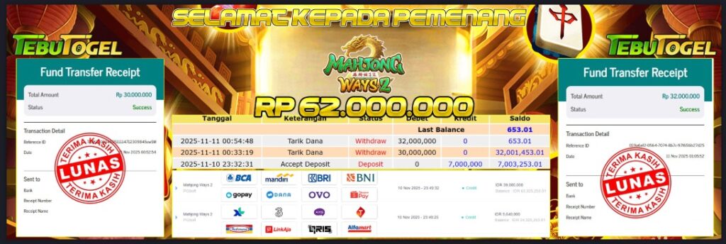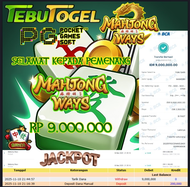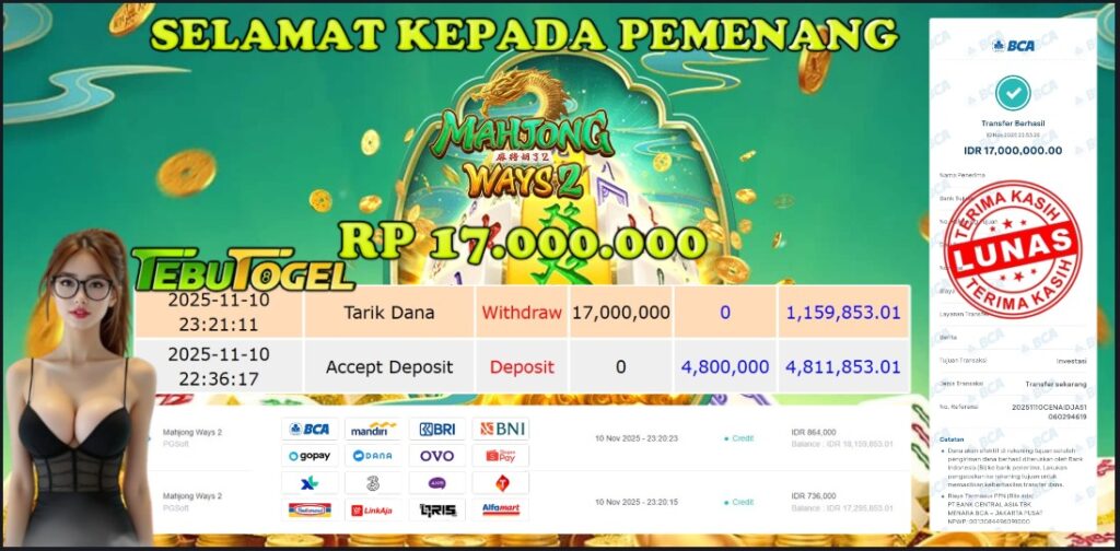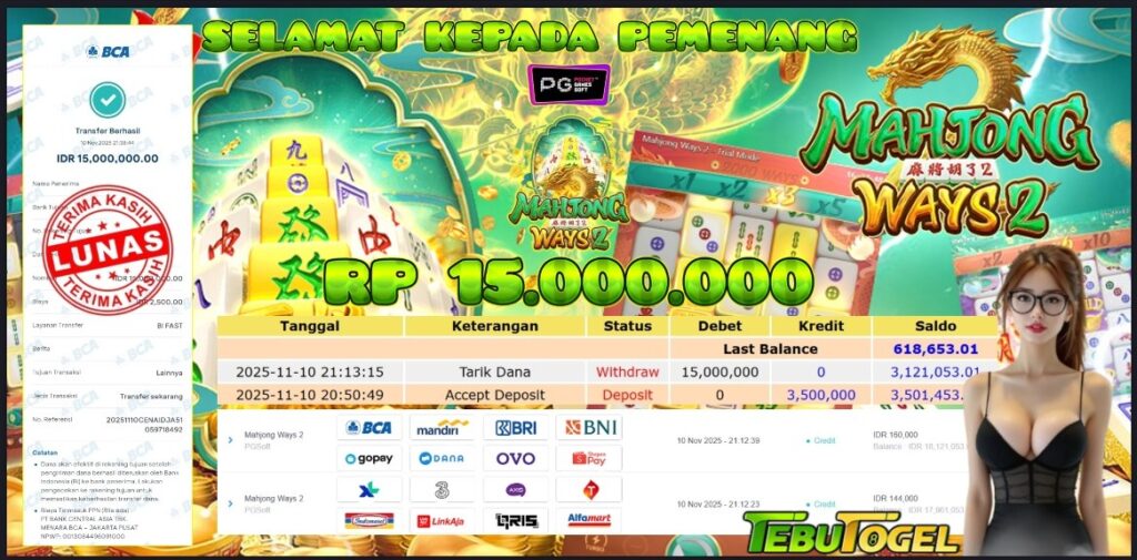 Selamat kepada User id : MOKS*** telah berhasil mendapatkan kemenangan besar pada permainan SLOT MAHJONG WAYS 2 dengan kemenangan sebesar … Baca selengkapnya...