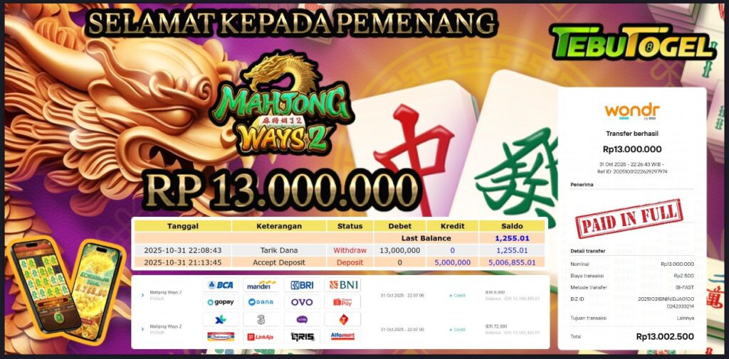 Selamat kepada User id : NUTRY*** telah berhasil mendapatkan kemenangan besar pada permainan SLOT MAHJONG WAYS 2 dengan kemenangan sebesar … Baca selengkapnya...
