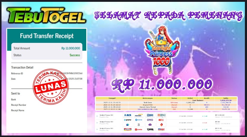 BUKTI JACKPOT SLOT STARLIGHT PRINCESS 1000 Rp 11.000.000,- LUNAS