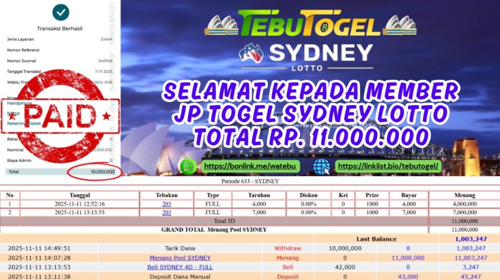 BUKTI JACKPOT TOGEL SYDNEY LOTTO Rp 10.200.000,- LUNAS
