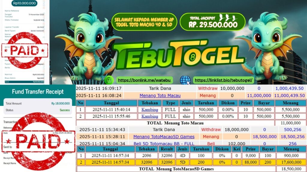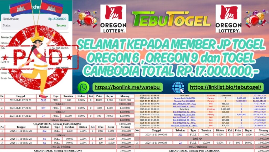 Selamat kepada User id : BABON*** telah berhasil mendapatkan kemenangan besar pada permainan TOGEL OREGON 6,OREGON 9 DAN CAMBODIA dengan … Baca selengkapnya...