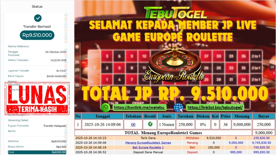 Selamat kepada User id : KAIDO*** telah berhasil mendapatkan kemenangan besar pada permainan LIVE GAME ERUROPE ROULTTE dengan kemenangan … Baca selengkapnya...