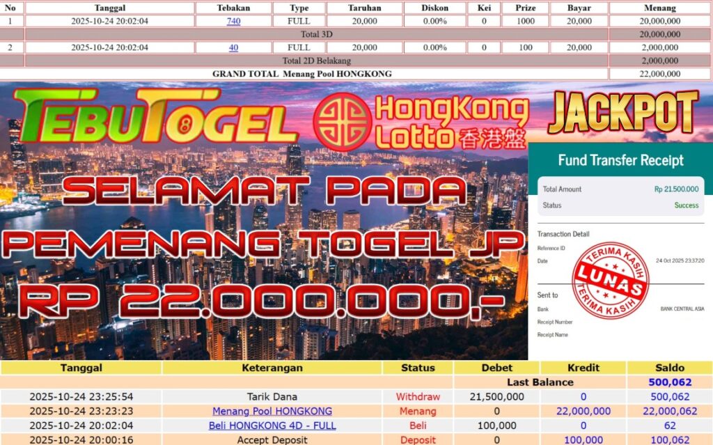 Selamat kepada User id : MAK00**** telah berhasil mendapatkan kemenangan besar pada permainan TOGEL HONGKONG LOTTO dengan kemenangan … Baca selengkapnya...