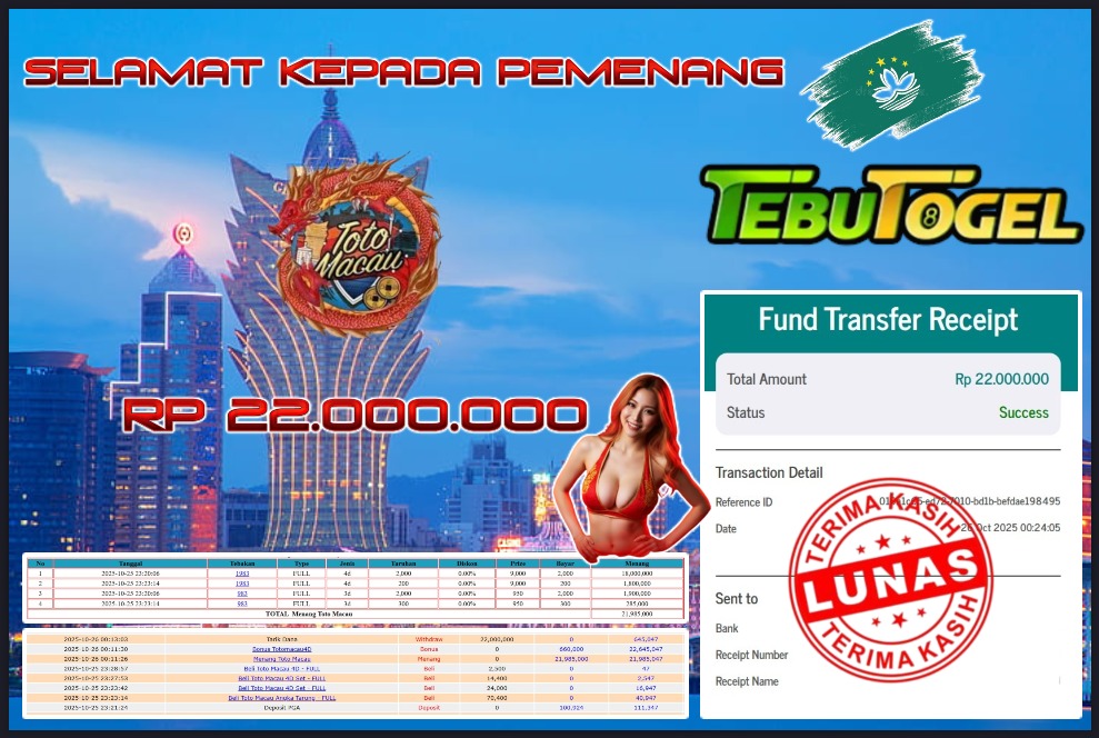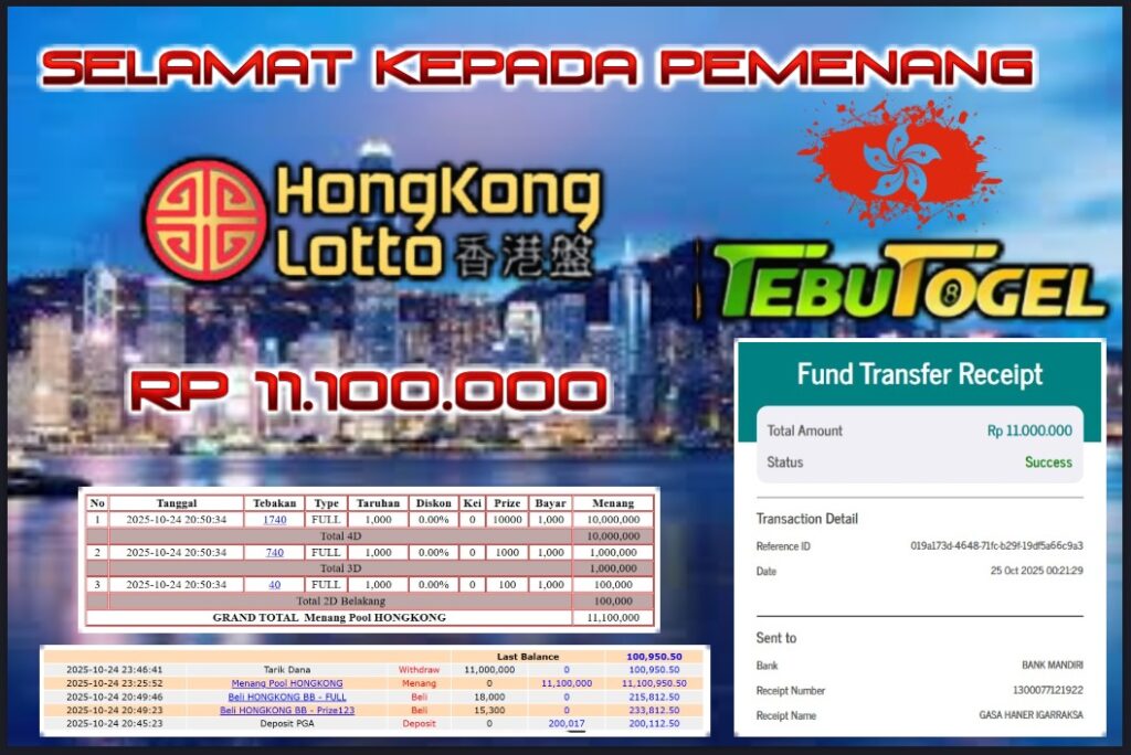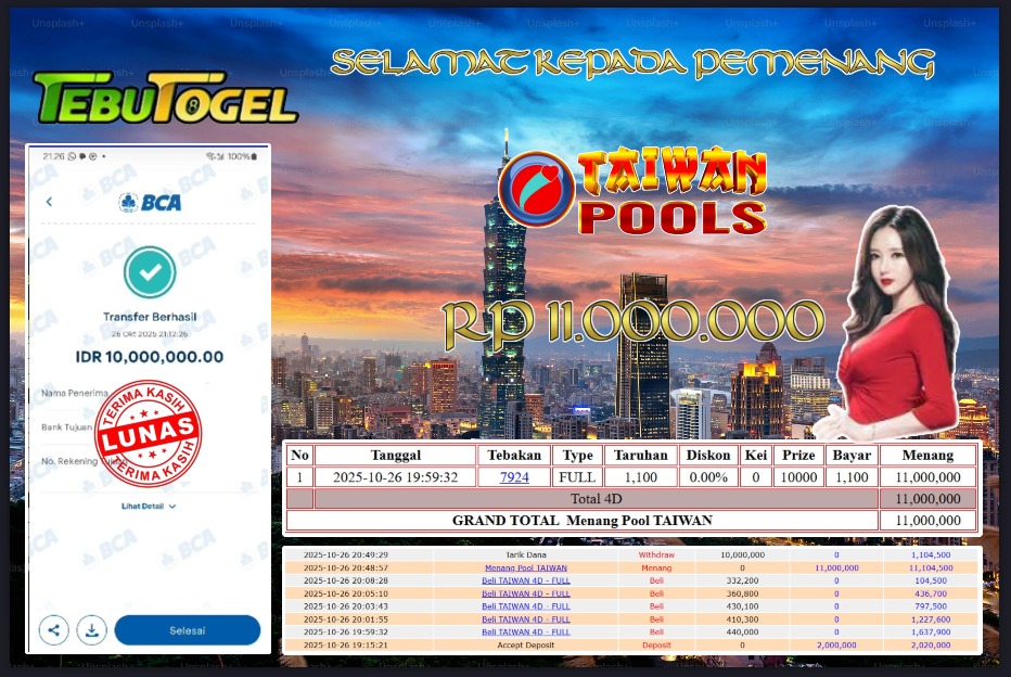 BUKTI JACKPOT TOGEL TAIWAN Rp 11.000.000,- LUNAS