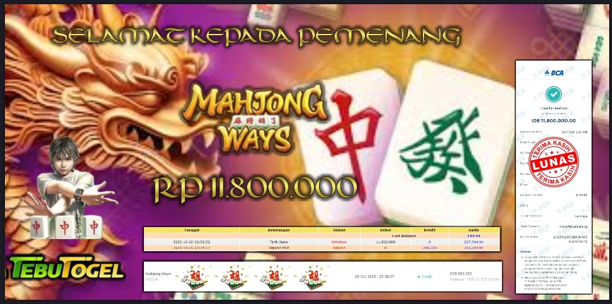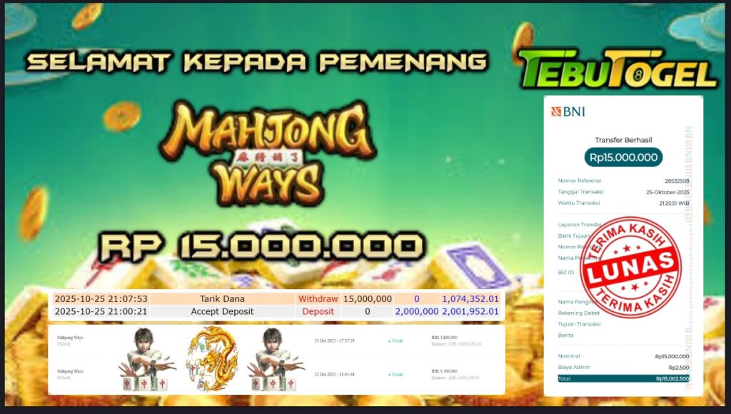 Selamat kepada User id : NURT** telah berhasil mendapatkan kemenangan besar pada permainan SLOT MAHJONG WAYS 2 dengan kemenangan sebesar … Baca selengkapnya...