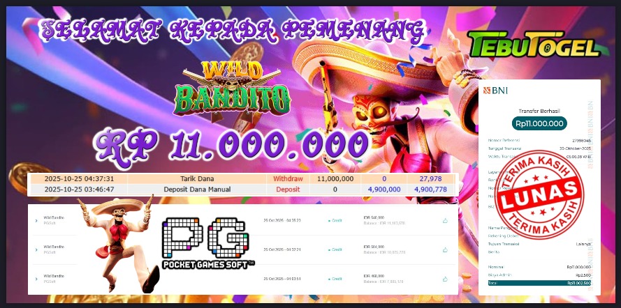 Selamat kepada User id : BURHAN12**** telah berhasil mendapatkan kemenangan besar pada permainan SLOT WILD BANDITO dengan kemenangan sebesar Rp … Baca selengkapnya...