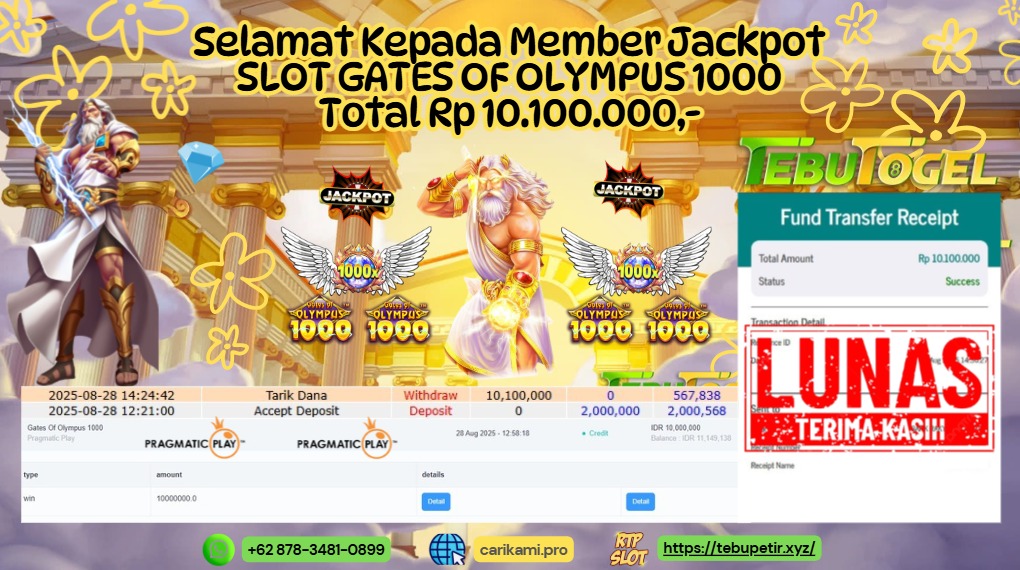 Selamat kepada User id : BURIT***** telah berhasil mendapatkan kemenangan besar pada permainan SLOT GATES OF OLYMPUS dengan kemenangan sebesar … Baca selengkapnya...