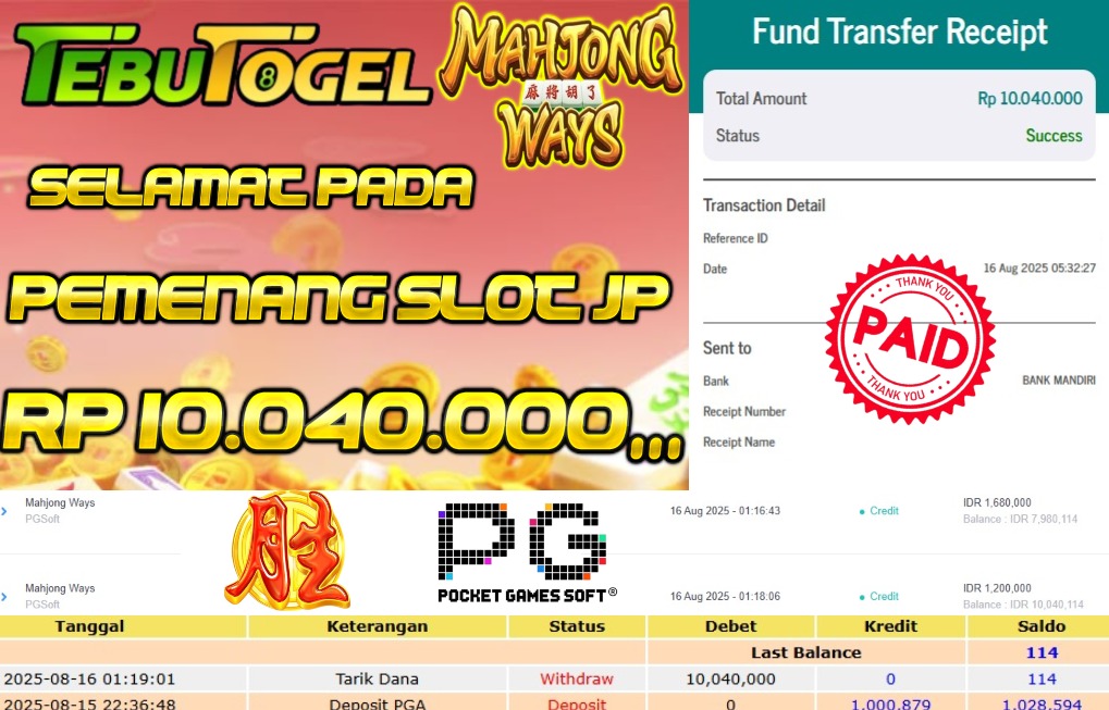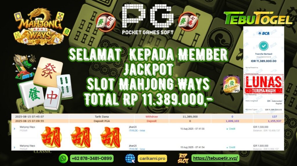 Selamat kepada User id : NIKMIR*** telah berhasil mendapatkan kemenangan besar pada permainan SLOT MAHJONG WAYS dengan kemenangan sebesar Rp … Baca selengkapnya...