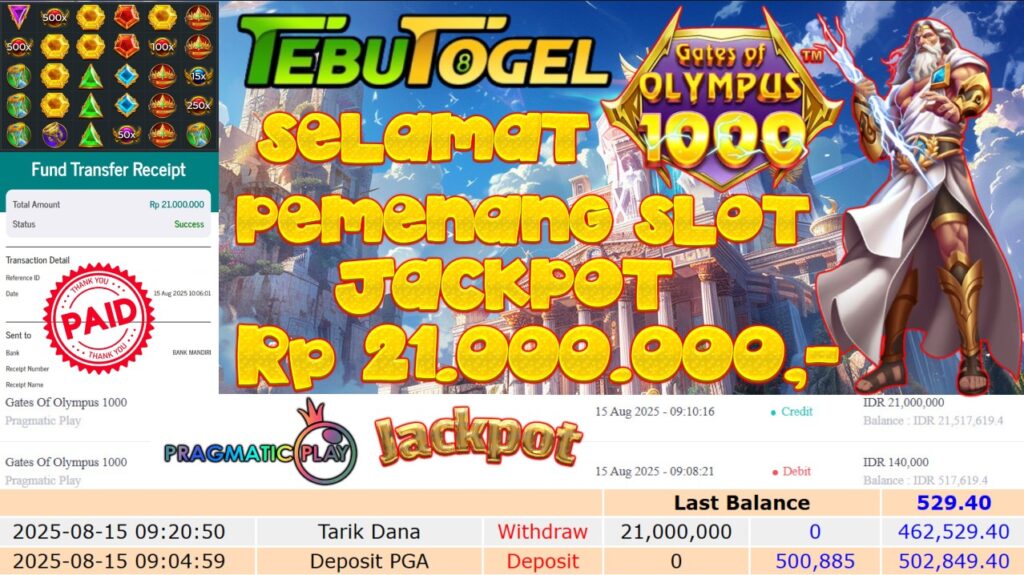 Selamat kepada User id : lipo***** telah berhasil mendapatkan kemenangan besar pada permainan SLOT GATES OF OLYMPUS 1000 dengan kemenangan … Baca selengkapnya...