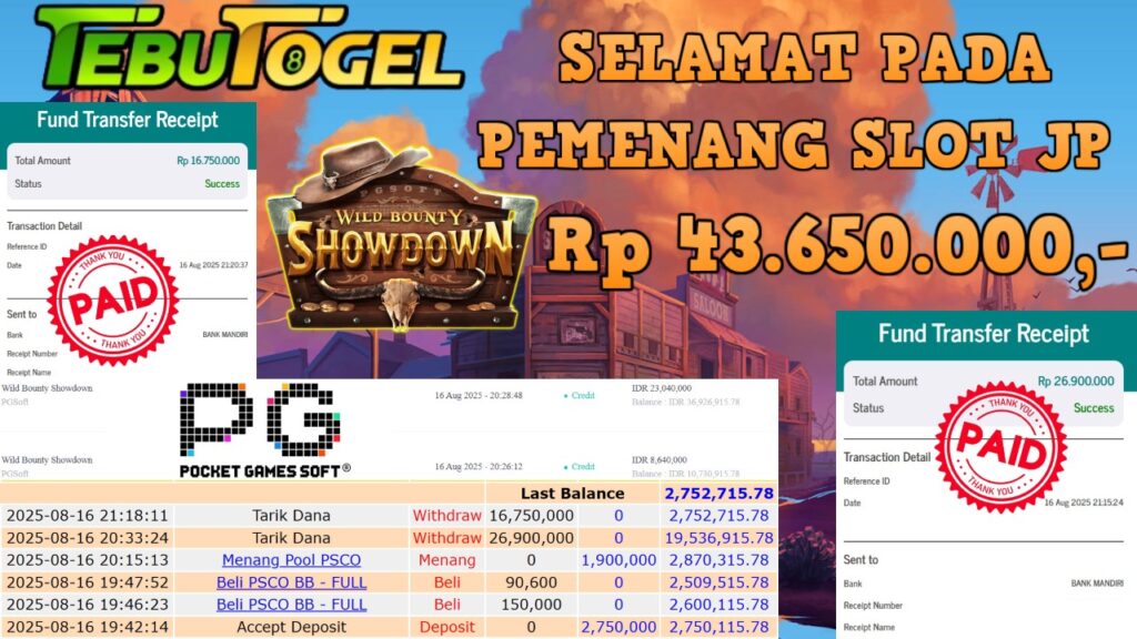 Selamat kepada User id : BDRONEPICE***** telah berhasil mendapatkan kemenangan besar pada permainan SLOT WILD BOUNTY SHOWDOWN dengan kemenangan sebesar … Baca selengkapnya...