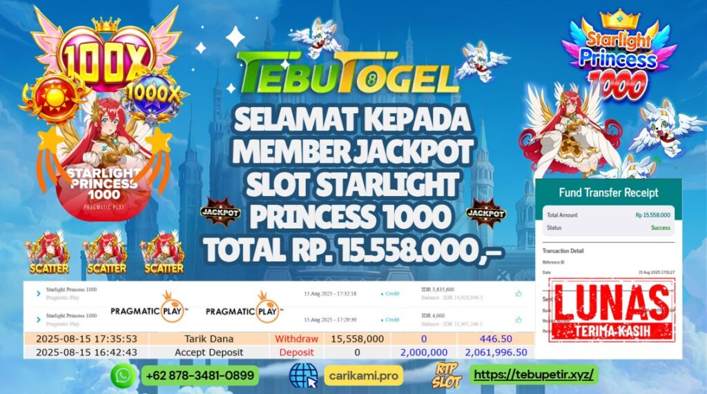Selamat kepada User id : MONO** telah berhasil mendapatkan kemenangan besar pada permainan SLOT STARLIGHT PRINCESS 1000 dengan kemenangan sebesar … Baca selengkapnya...