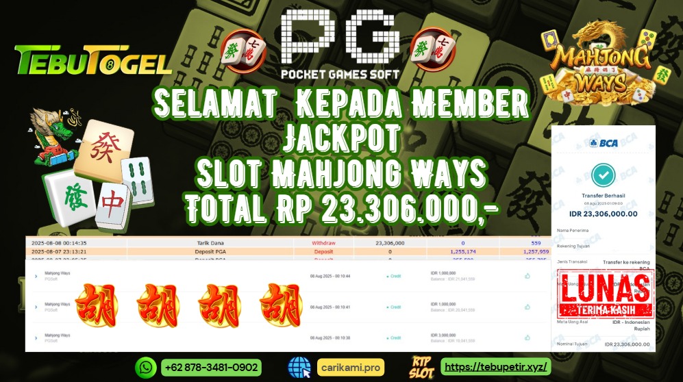 Selamat kepada User id : TOBAT*** telah berhasil mendapatkan kemenangan besar pada permainan SLOT MAHJONG WAYS 2 dengan kemenangan sebesar … Baca selengkapnya...