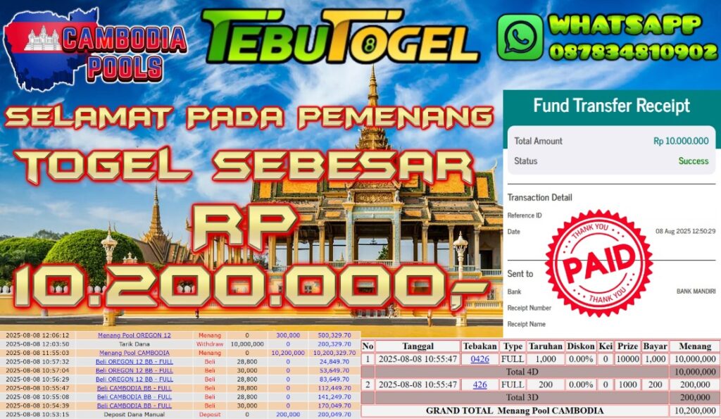 Selamat kepada User id : OZAWA**** telah berhasil mendapatkan kemenangan besar pada permainan TOGEL CAMBODIA kemenangan sebesar Rp 10.200.000,- Setelah … Baca selengkapnya...