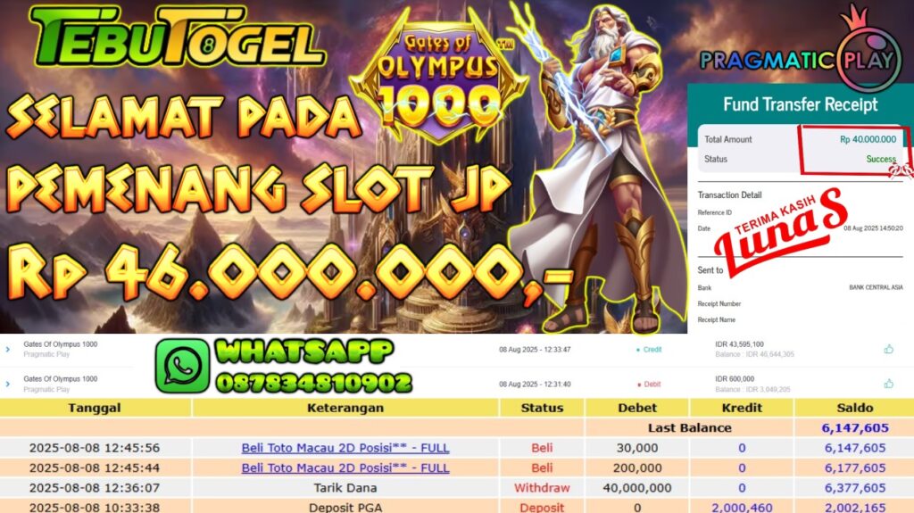 Selamat kepada User id : mononia*** telah berhasil mendapatkan kemenangan besar pada permainan SLOT GATES OF OLYMPUS 1000 dengan kemenangan … Baca selengkapnya...