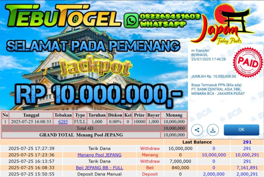 BUKTI JACKPOT TOGEL GATES OF GATOT KACA 1000 Rp 28.000.000,- LUNAS