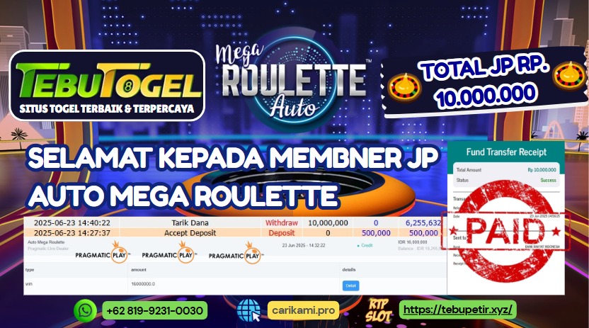 Selamat kepada User id : BEGON*** telah berhasil mendapatkan kemenangan besar pada permainan LIVE GAME AUTO MEGA … Baca selengkapnya...