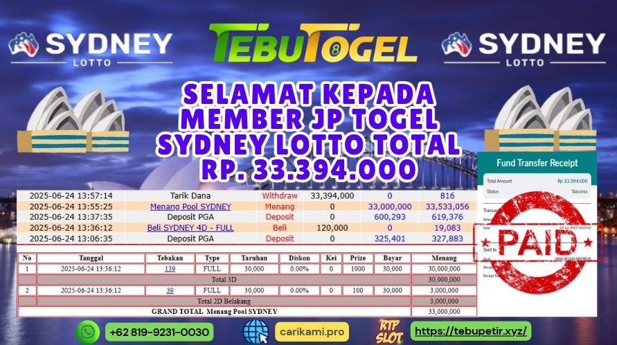 Selamat kepada User id : TIBET**** telah berhasil mendapatkan kemenangan besar pada permainan TOGEL SYDNEY LOTTO dengan … Baca selengkapnya...