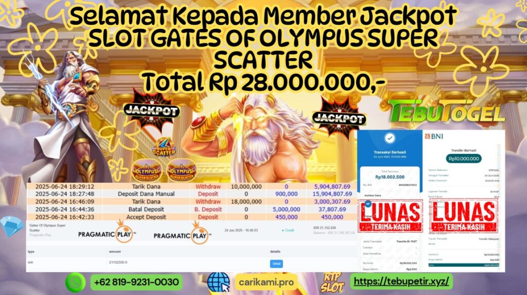 Selamat kepada User id : TIMAH*** telah berhasil mendapatkan kemenangan besar pada permainan GATES OF OLYMPUS SUPER SCATTER … Baca selengkapnya...