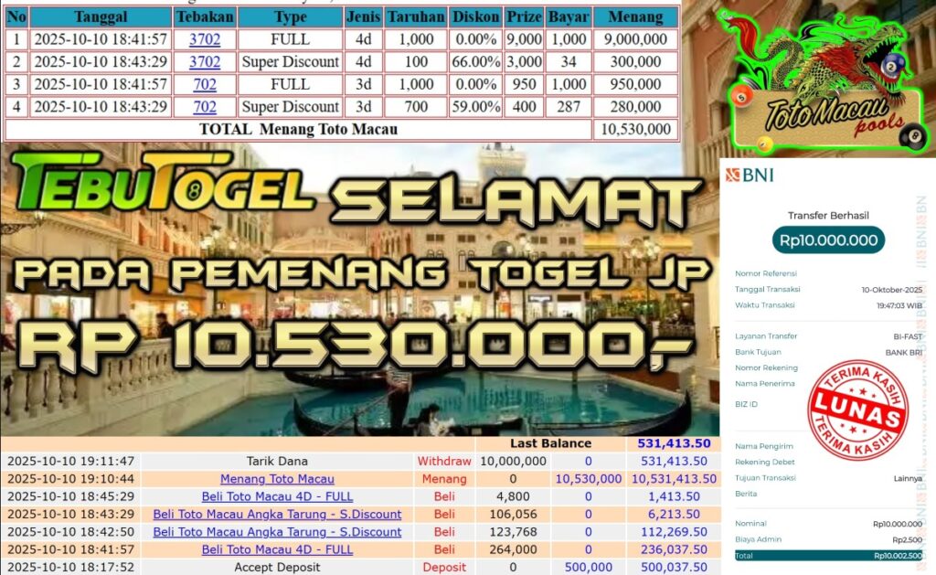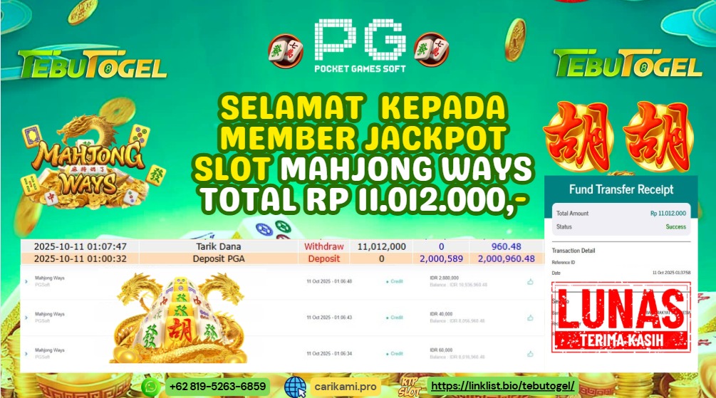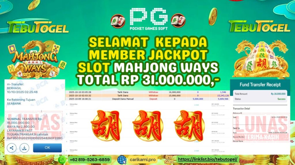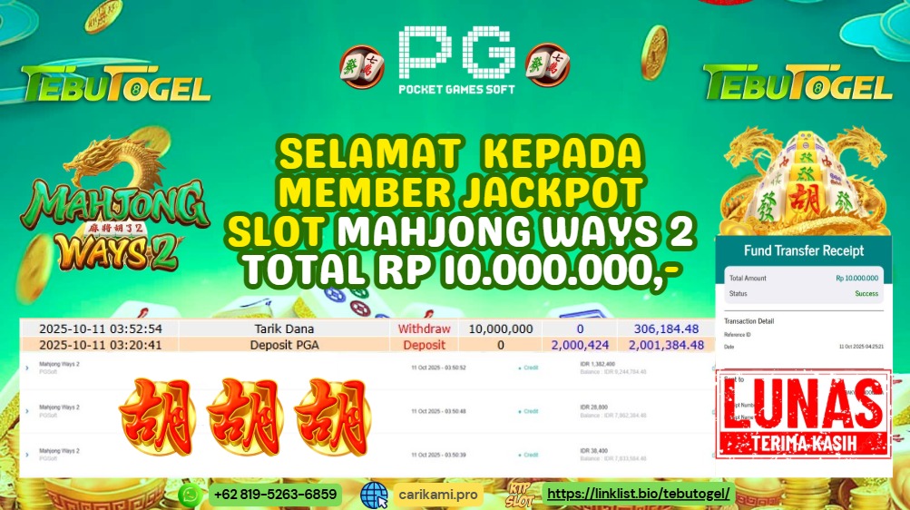 BUKTI JACKPOT SLOT MAHJONG WAYS 2 Rp 10.000.000,- LUNAS