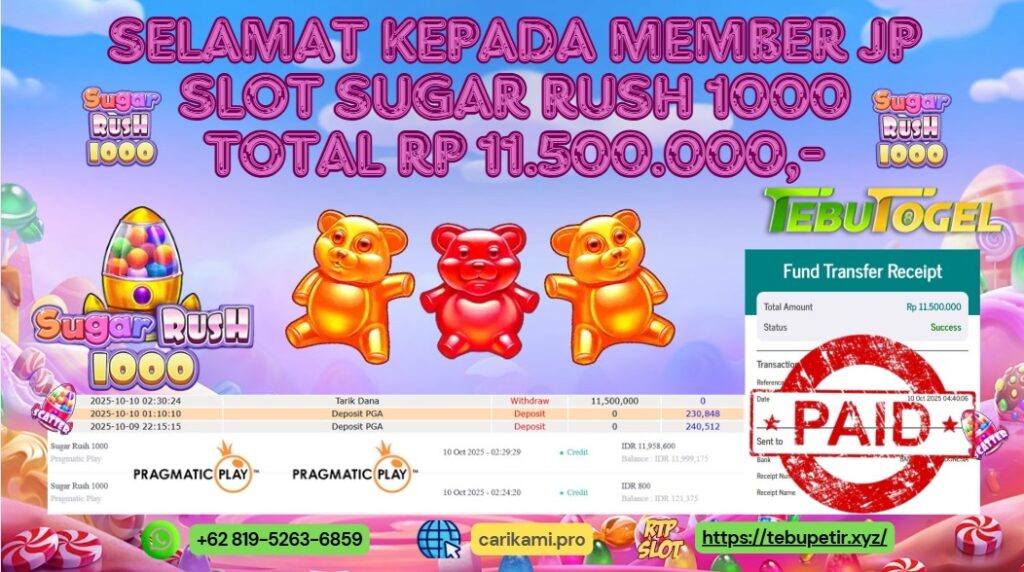 Selamat kepada User id : SEBAT*** telah berhasil mendapatkan kemenangan besar pada permainan SLOT SUGAR RUSH 1000 dengan kemenangan sebesar … Baca selengkapnya...