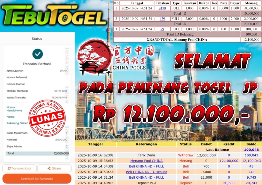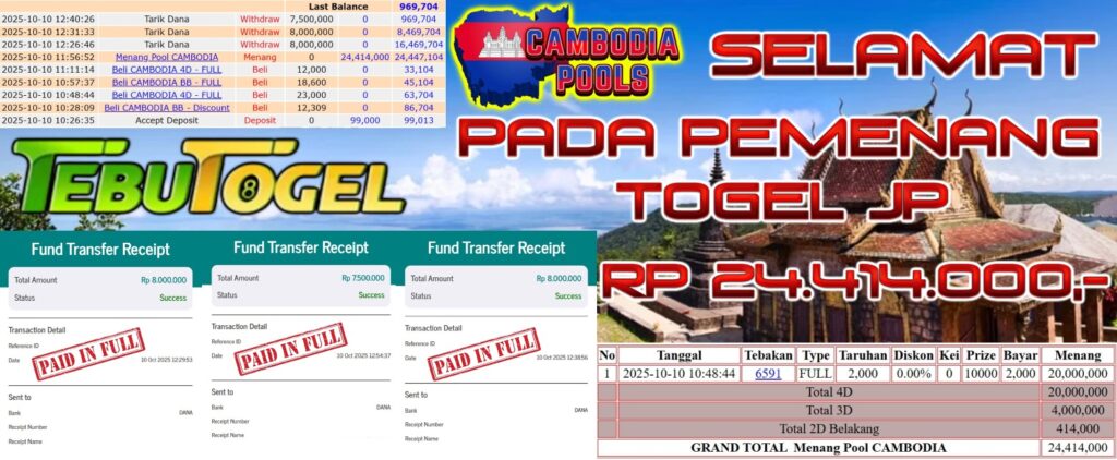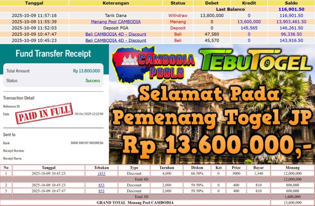 Selamat kepada User id : WAGON**** telah berhasil mendapatkan kemenangan besar pada permainan TOGEL CAMBODIA dengan kemenangan sebesar Rp 13.600.000,-… Baca selengkapnya...